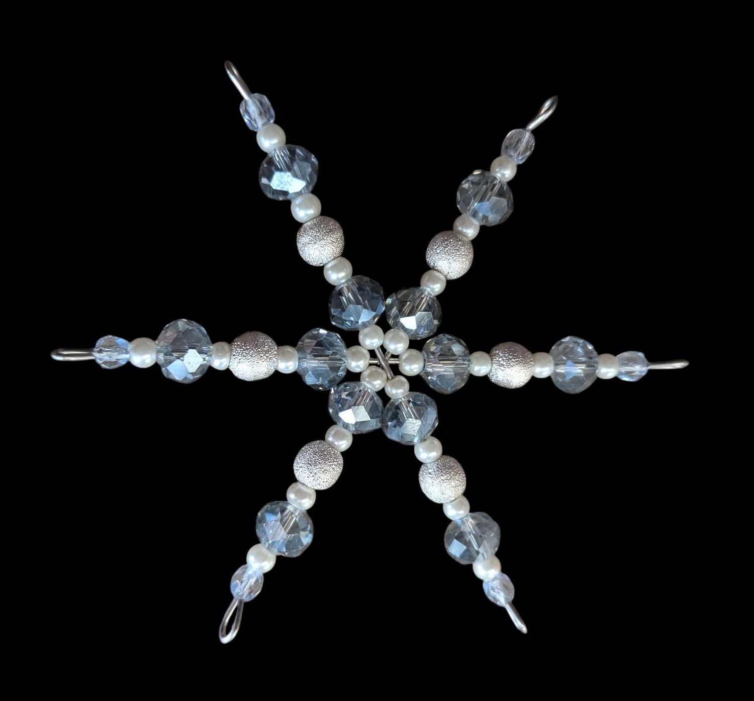 A little extra pizzazz for your Christmas tree! Clear grey and sterling silver beads!