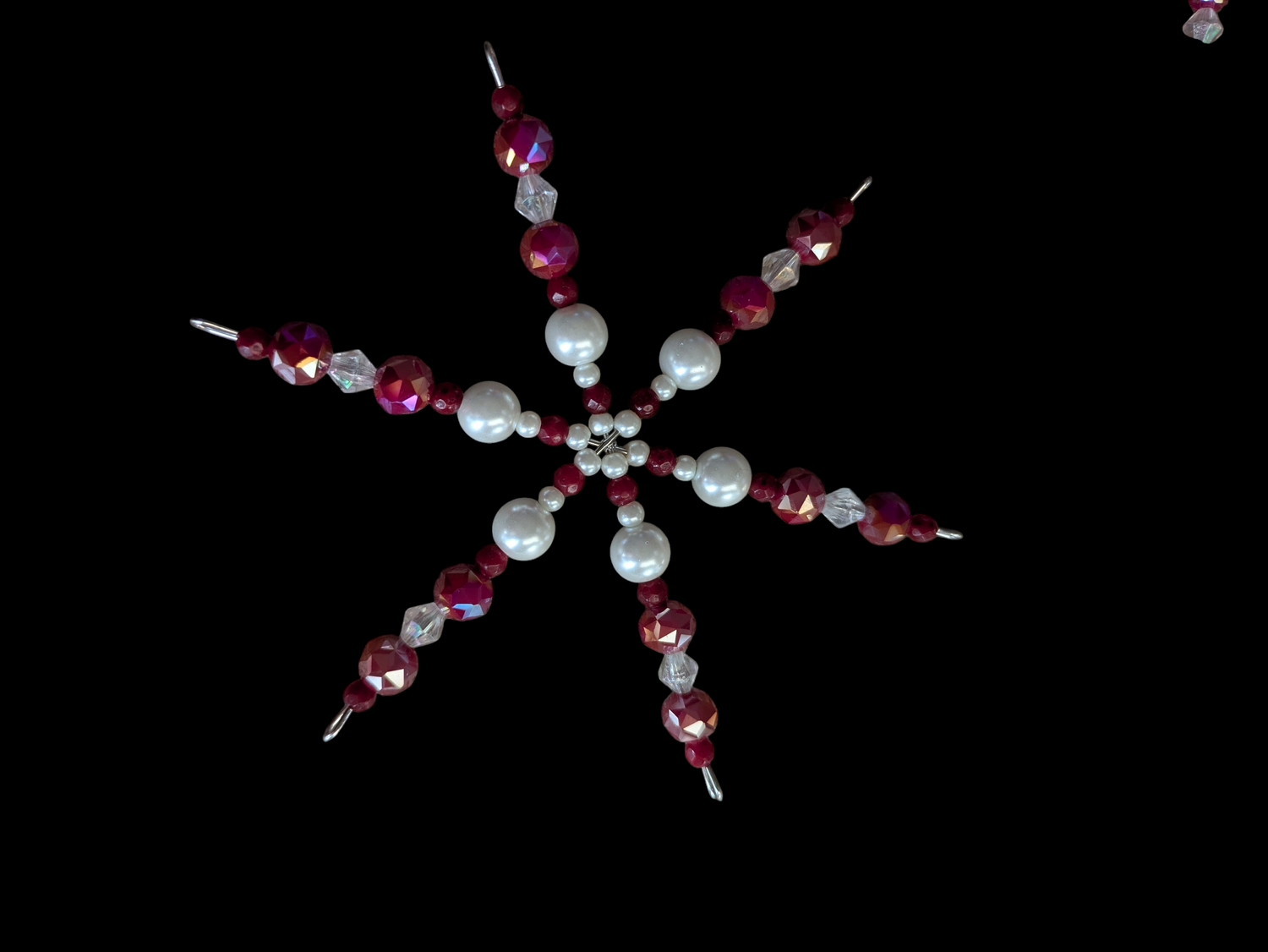 So perfect for Christmas! This red, gold and clear crystal beaded snowflake ornament is a perfect gift - teachers, friends, stocking stuffers and white elephant gift exchange