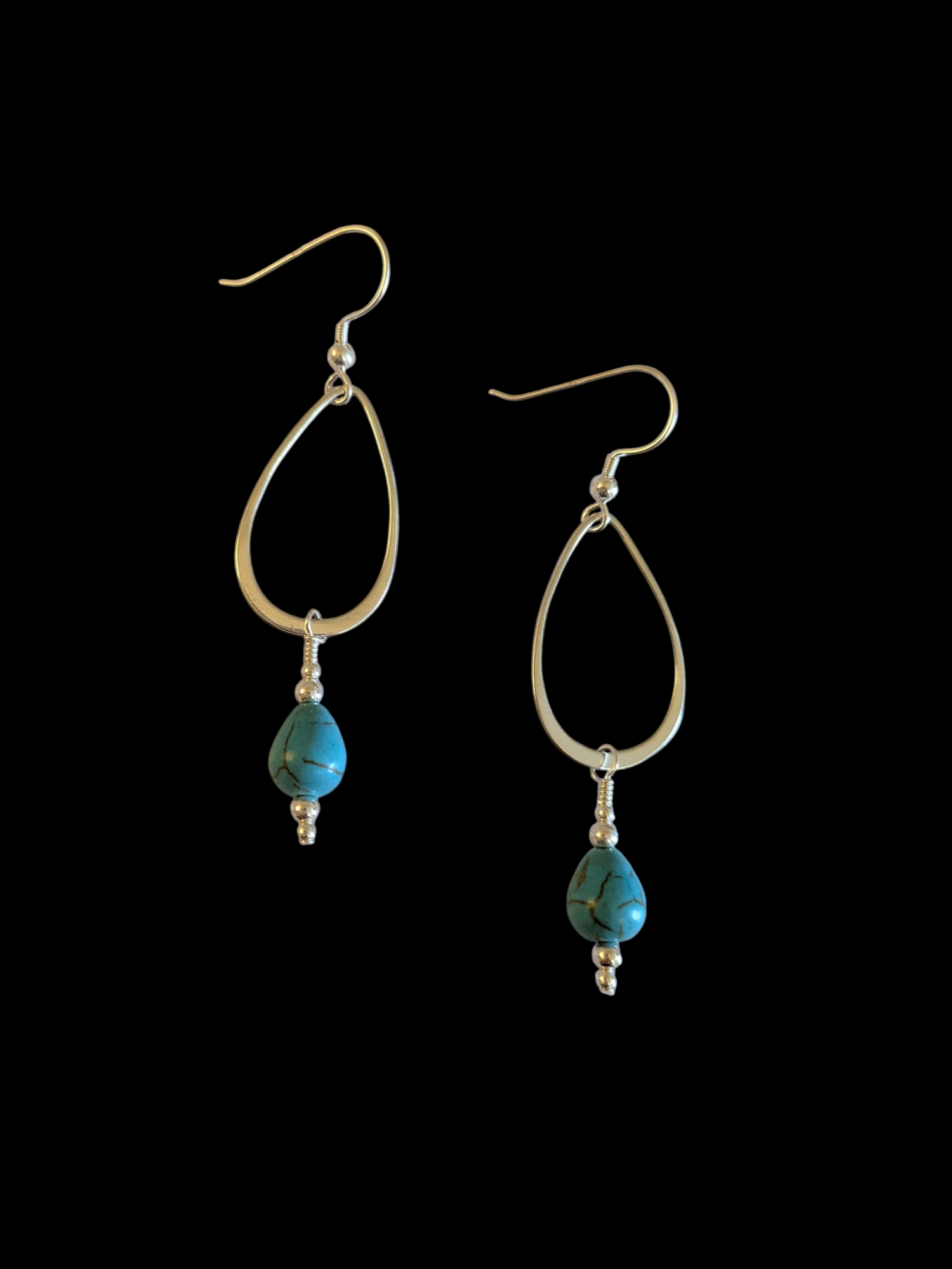 These turquoise magnesite stones give a pop of brilliant color to everything you wear. They dangle from sterling silver teardrops that compliment your face!
